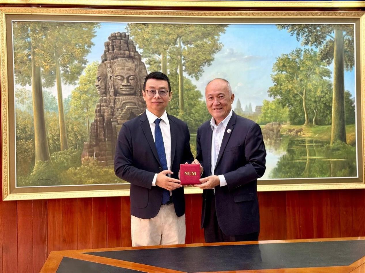 柬埔寨國立管理大學(xué)校長Dr. Hor Peng對陸丹博士一行的到來致以熱烈歡迎。他表示,柬埔寨國立管理大學(xué)立足商科、始終以創(chuàng)新驅(qū)動發(fā)展,該校2022年首次入圍WURI全球創(chuàng)新大學(xué)百強(qiáng)(第95位),是當(dāng)年柬埔寨唯一入選高校。在人工智能時代背景下,學(xué)校正通過整合優(yōu)質(zhì)教育資源、深化前沿學(xué)術(shù)研究,積極助力柬埔寨社會轉(zhuǎn)型。柬埔寨國立管理大學(xué)校長Dr. Hor Peng高度認(rèn)同吉利教育“三個校園”理念及芯位教育在AI教育領(lǐng)域的創(chuàng)新實踐,并期待與吉利人才發(fā)展集團(tuán)及芯位教育建立長期戰(zhàn)略合作關(guān)系,共同推進(jìn)教育國際化進(jìn)程。