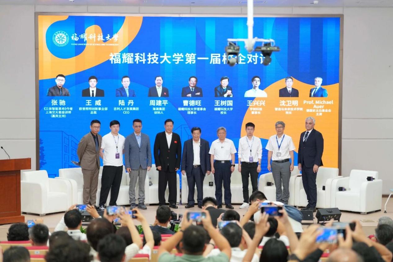 在校企對話環(huán)節(jié),陸丹博士與福耀科技大學(xué)理事會理事長曹德旺、校長王樹國、智造與未來技術(shù)學(xué)院院長沈衛(wèi)明、宇樹科技創(chuàng)始人王興興、海瀾集團創(chuàng)始人周建平、歐普照明創(chuàng)新事業(yè)部王威等企業(yè)界、教育界人士,圍繞“構(gòu)建新時代校企合作新生態(tài)”主題,就校企合作模式、高校教學(xué)改革、企業(yè)需求對接等問題展開了深入討論。