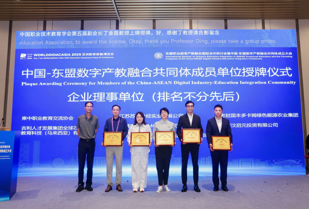 2025年9月18日,東盟職業(yè)教育產(chǎn)教融合國際合作研討會暨中國-東盟數(shù)字產(chǎn)教融合共同體成立大會在杭州舉辦,全球芯位科技教育有限公司(馬來西亞)受邀參會,并當(dāng)選中國-東盟數(shù)字產(chǎn)教融合共同體企業(yè)理事單位。本次大會以“職業(yè)教育國際產(chǎn)教融合路徑探索和創(chuàng)新”為主題,匯聚了來自中國與東盟各國的教育官員、院校領(lǐng)袖及行業(yè)專家,共同探討數(shù)字時代背景下職業(yè)教育國際合作的新模式與新未來。