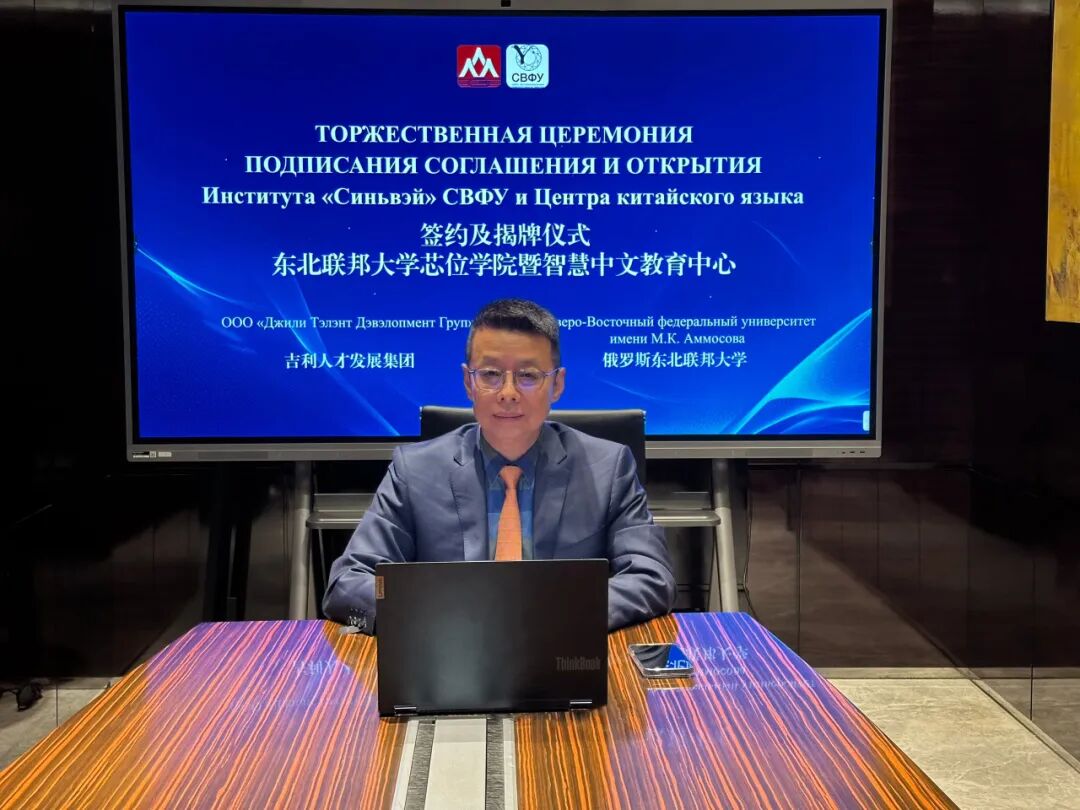 2025年9月29日,吉利人才發(fā)展集團(tuán)攜芯位教育與俄羅斯東北聯(lián)邦大學(xué)以線上線下聯(lián)動的形式,舉辦了“俄羅斯東北聯(lián)邦大學(xué)·芯位學(xué)院暨智慧中文教育中心”簽約揭牌儀式。吉利人才發(fā)展集團(tuán)CEO、芯位教育董事長陸丹博士線上見證,吉利人才發(fā)展集團(tuán)副總裁、芯位教育執(zhí)行總經(jīng)理車怡博士現(xiàn)場簽約并揭牌。