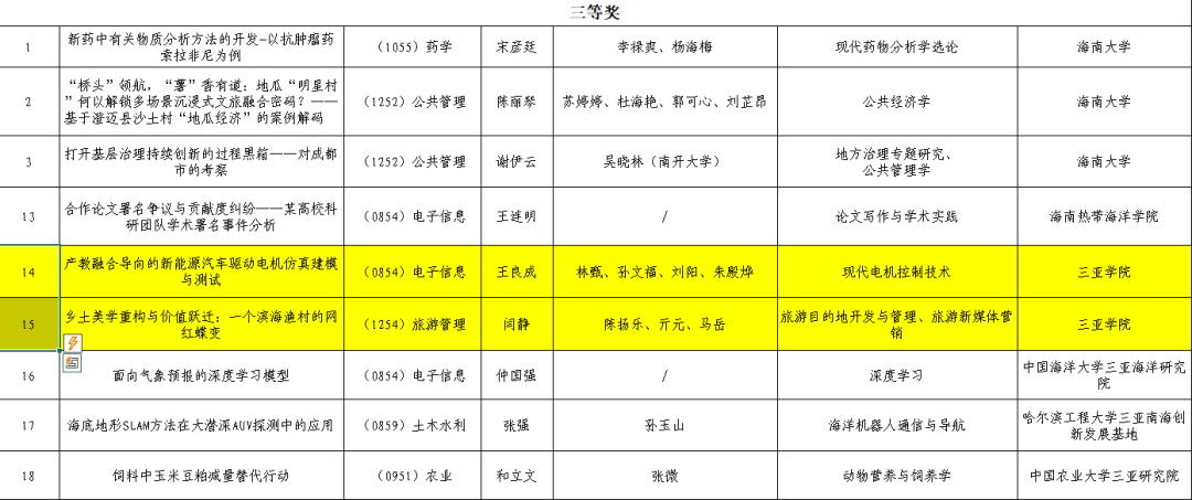 近日,海南省教育廳正式發(fā)布《海南省教育廳關(guān)于公布第四屆“優(yōu)秀研究生導師”和“優(yōu)秀研究生導師團隊”評選結(jié)果的通知》(瓊教高〔2025〕95號)及《關(guān)于公布第四屆專業(yè)學位研究生優(yōu)秀教學案例評選結(jié)果的通知》(瓊教高〔2025〕96號)。三亞學院社會工作專業(yè)蘇米雅教授獲頒“海南省優(yōu)秀研究生導師”稱號,肖芒教授帶領(lǐng)的“農(nóng)村社會工作研究生導師團隊”入選優(yōu)秀團隊;旅游與酒店管理學院閆靜副教授牽頭的《鄉(xiāng)土美學重構(gòu)與價值躍遷:一個濱海漁村的網(wǎng)紅蝶變》教學案例,以及新能源與智能網(wǎng)聯(lián)汽車學院王良成高級工程師牽頭的《產(chǎn)教融合導向的新能源汽車驅(qū)動電機仿真建模與測試》教學案例,均榮獲三等獎。