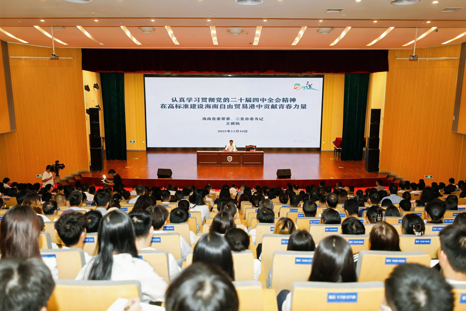 1110日,省委常委、市委書記王祺揚(yáng)以“認(rèn)真學(xué)習(xí)貫徹黨的二十屆四中全會(huì)精神,在高標(biāo)準(zhǔn)建設(shè)海南自由貿(mào)易港中貢獻(xiàn)青春力量”為題,在三亞學(xué)院宣講黨的二十屆四中全會(huì)精神并講授思政課。三亞學(xué)院校長沈建勇主持宣講會(huì)。